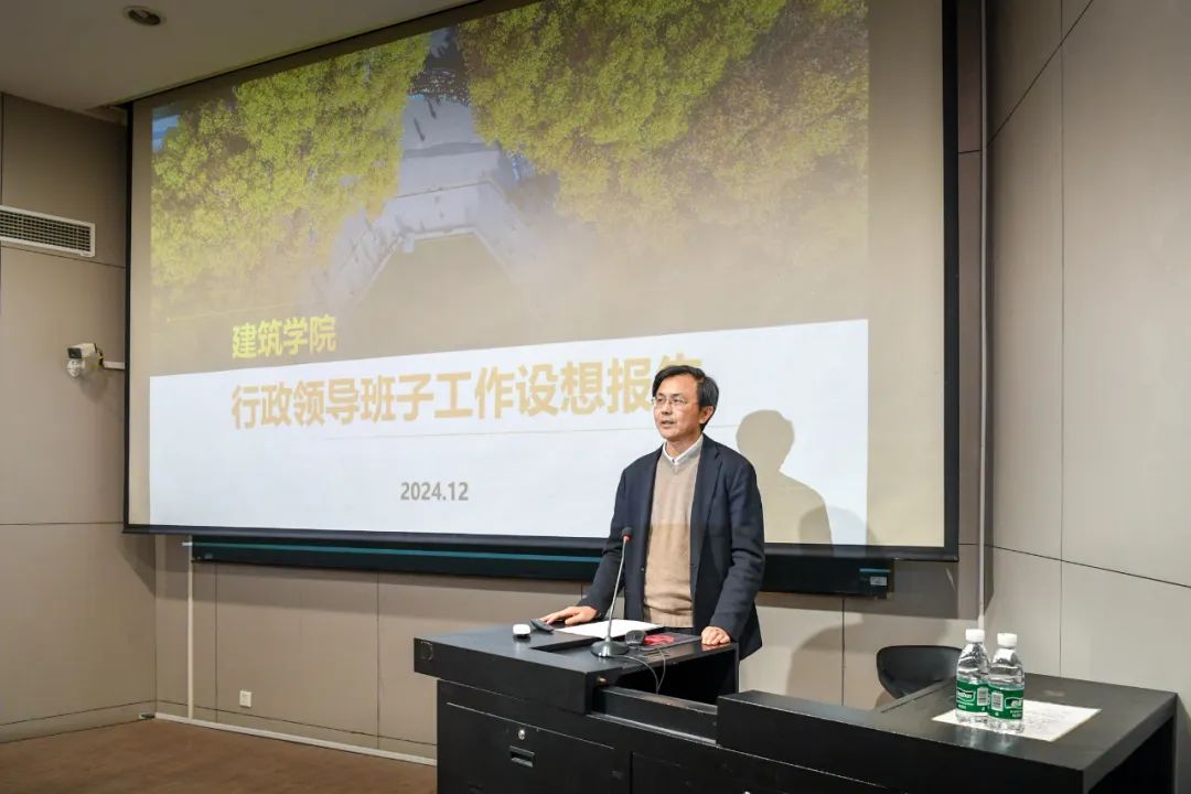 接着,张彤院长代表新一届行政领导班子从好色tv 学术战略、改革任务与行动举措等方面做工作思路报告。他指出,要坚定改革决心,进一步明晰学科的本体内核和价值贡献,优化行政架构,加强相关方向师资队伍建设;改革建筑类专业人才培养体系和学制设置;全面应对数智科技,尤其是人工智能带来的机会和挑战,重塑课程结构、知识体系和教学模式,尽快完成传统学科群的转型。随后,张彤院长进一步从六个方面阐述了改革任务和行动措施,分别是:明辨学科发展支柱性方向,推动交叉融合,推进学科建设;强化设计作为学科核心,全面提高设计教学和设计研究水平;改革人才培养体系,提高人才培养效率;系统谋划科研布局,创设科技创新机制;坚持国际化办学特色,由“示范”成为“日常”;凝聚东南学派学术精神,提升学院文化建设。