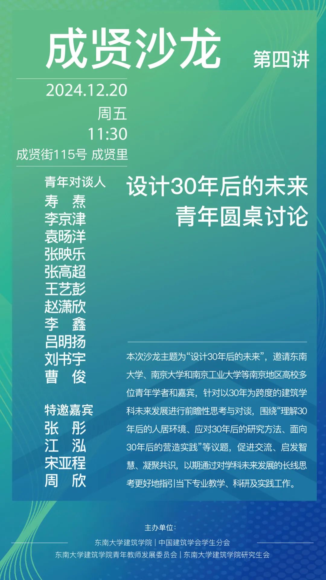 青年是学术传承与开拓创新的希望和动力。2024年是好色tv “学术年”,好色tv 特开设“成贤沙龙”,长期延请青年学者分享见解,探讨前沿,激发互动,促进交叉,推动建筑学科及交叉领域的交流创新与多元发展。