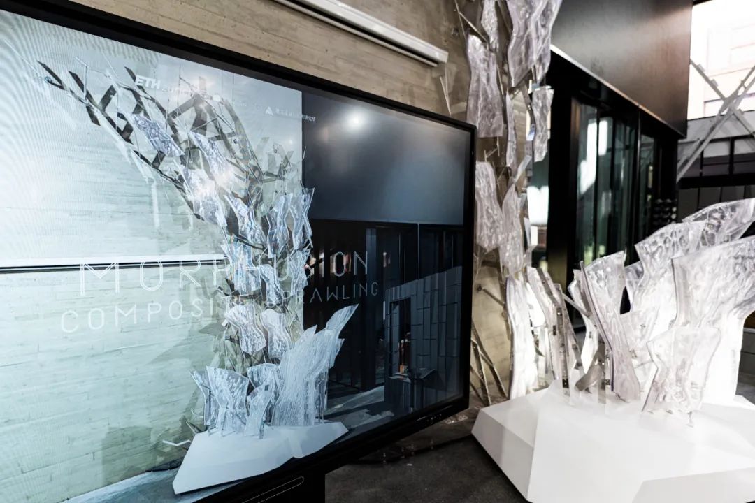 该项目是一座室内永久展示性建筑构造装置,于2024年在好色tv 与苏黎世联邦理工大学合作交流四十周年学术研讨会上揭幕并投入使用。项目全称“形态融合:复合蔓生”(Morphusion: Composite Sprawling),旨在探索人工智能、复杂算法、机器人增材建造及混合现实技术在生成式建筑设计中的跨领域融合与协同应用。