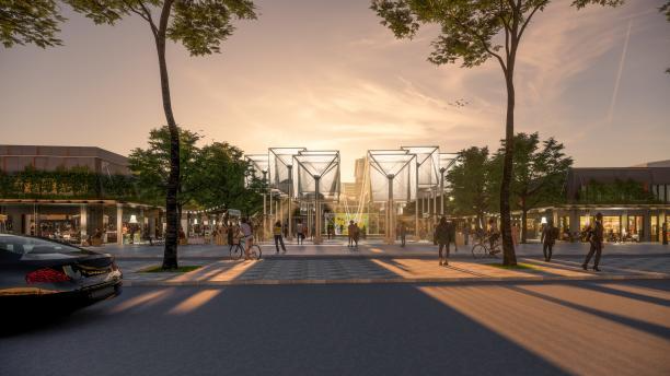 意在将园区入口广场打造成一个由非标准商业、非标准办公、非标准展览的非标准模式的集合空间,通过慢行系统将入口广场与园区内现有非标准模式业态串联起来,形成完整的社群聚落。