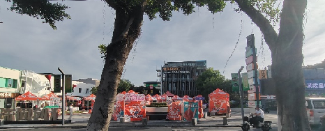 2.中部可移动的构筑物形成了很好的标识形象,但设计从收益和形态方面可能用力过度了一些。装置对广场本身占据过多,占据替代了现有的功能,可以考虑减少装置数量。