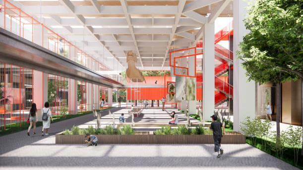 3.广场的覆盖结构可以再细化设计,目前整个架构和建筑是脱开的,在立面部分的呈现还没有深入考虑和建筑内部空间的关系。