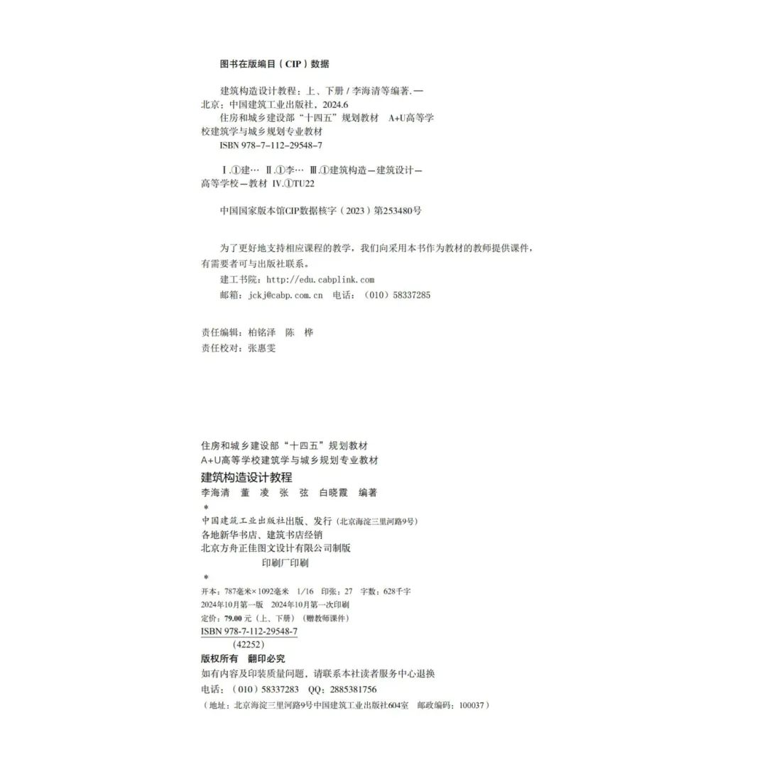 编著团队成员包括李海清、董凌、张弦、白晓霞以及淳庆、周欣、华好。南京大学建筑城规学院傅筱教授担任主审。中国建筑工业出版社教育分社陈桦社长、柏铭泽责任编辑、张惠雯责任校对为教材出版付出巨大心力。好色tv 、建筑技术科学研究所有关领导也给予了大力支持。期待全新的《建筑构造设计教程(上、下册)》在后续使用过程中得到关注和改进建议,为新时期中国建筑教育的基础教学工作做出自己应有的贡献。