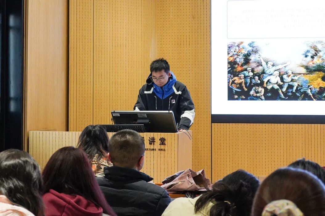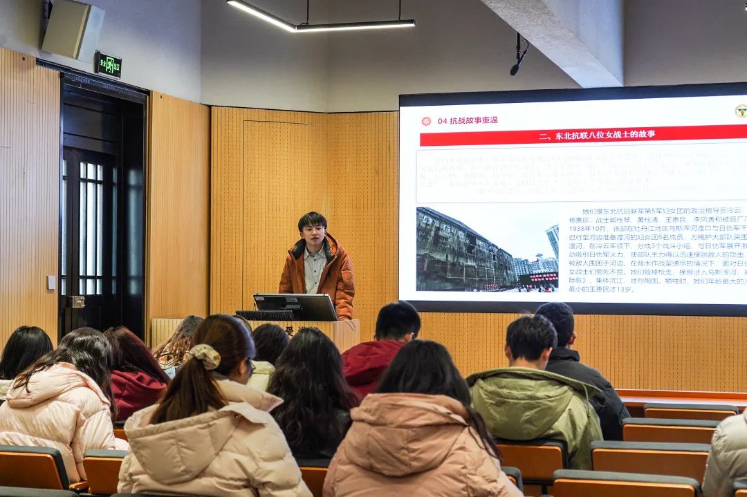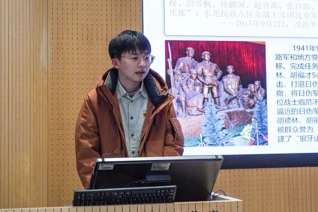接下来王志奇同志通过五个感人至深的抗战故事,带领我们重温了那段烽火岁月。他以“狼牙山五壮士”的壮烈事迹,展现了宁死不屈的民族气节;通过东北抗联八位女战士的英勇牺牲,诠释了巾帼不让须眉的豪迈;以英雄母亲邓玉芬送五子上战场的无私大爱,彰显了家国情怀的深沉;通过法国医生贝熙业在战火中救死扶伤的国际主义精神,体现了人道主义的崇高;最后以苏联飞行大队长库里申科的英勇献身,展现了国际反法西斯战线的团结力量。这些故事生动诠释了抗战精神的多元维度,激励我们铭记历史,传承精神。