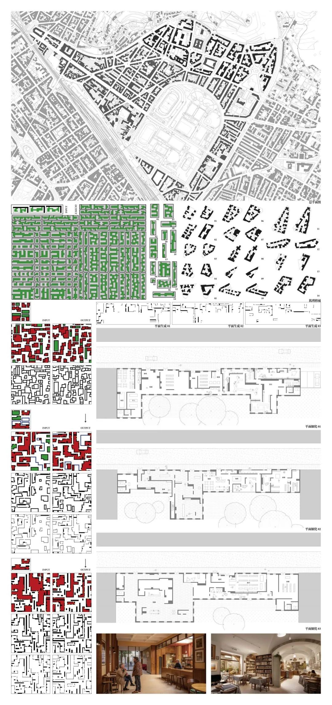 设计小组探索了一种基于波函数坍缩算法的城市生成设计系统化方法,在佛罗伦萨尝试应用,针对多尺度的城市设计问题,对算法本身和应用做优化。波函数坍缩是一个从局部到整体的规则导向的算法,提供了一个自下而上的设计视角,能够高效输出与目标结构相似但丰富多样的结果,以此提供方案初始阶段的辅助设计参照和灵感。