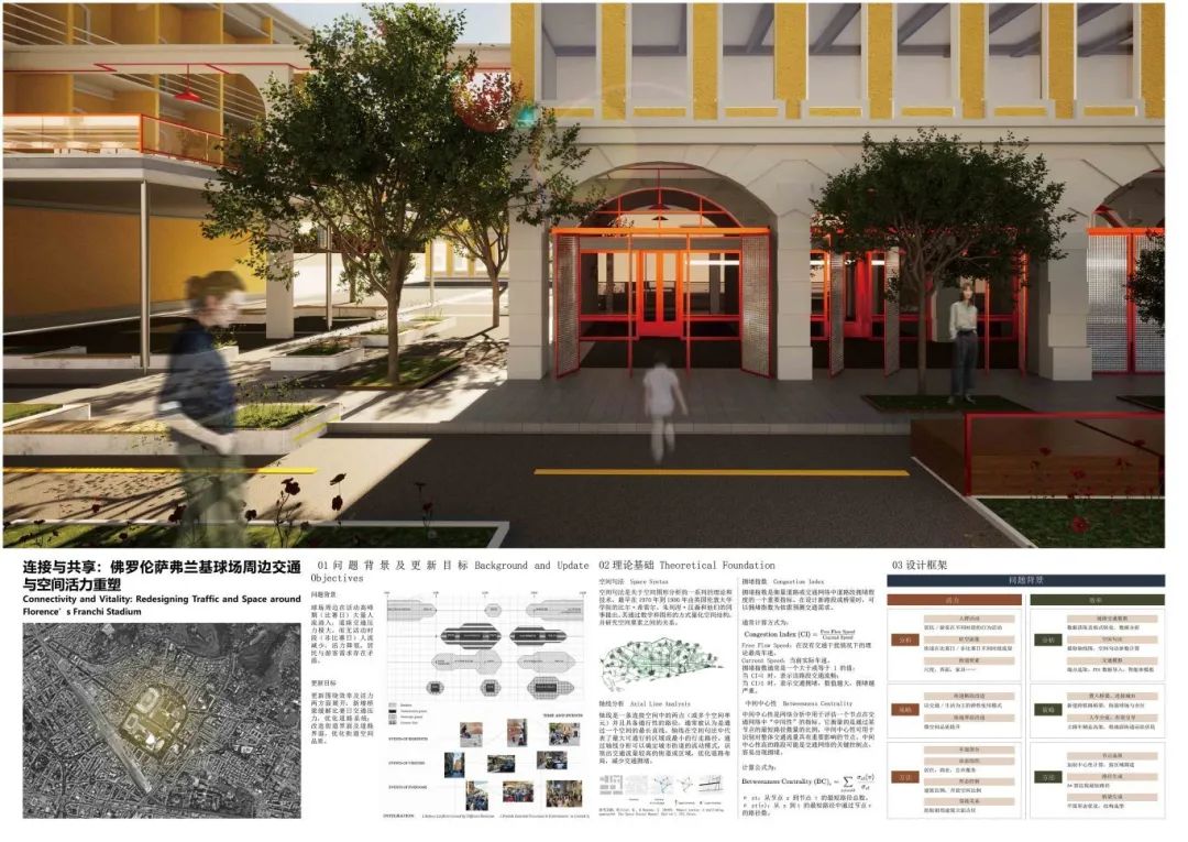本次研究生设计课程以佛罗伦萨弗兰基球场周边城市更新为核心课题,在历史文脉与现代需求的交织中,探讨城市设计的创新路径与技术融合。学生们通过实地调研与数据分析,围绕公共空间活力重塑、交通网络优化、功能复合布局等核心议题展开深入探索,并结合前沿算法与数字技术,系统性优化了区域空间结构。设计成果不仅为弗兰基球场片区提出了多维度的更新策略,更为佛罗伦萨的城市发展注入了新的活力与可能性。