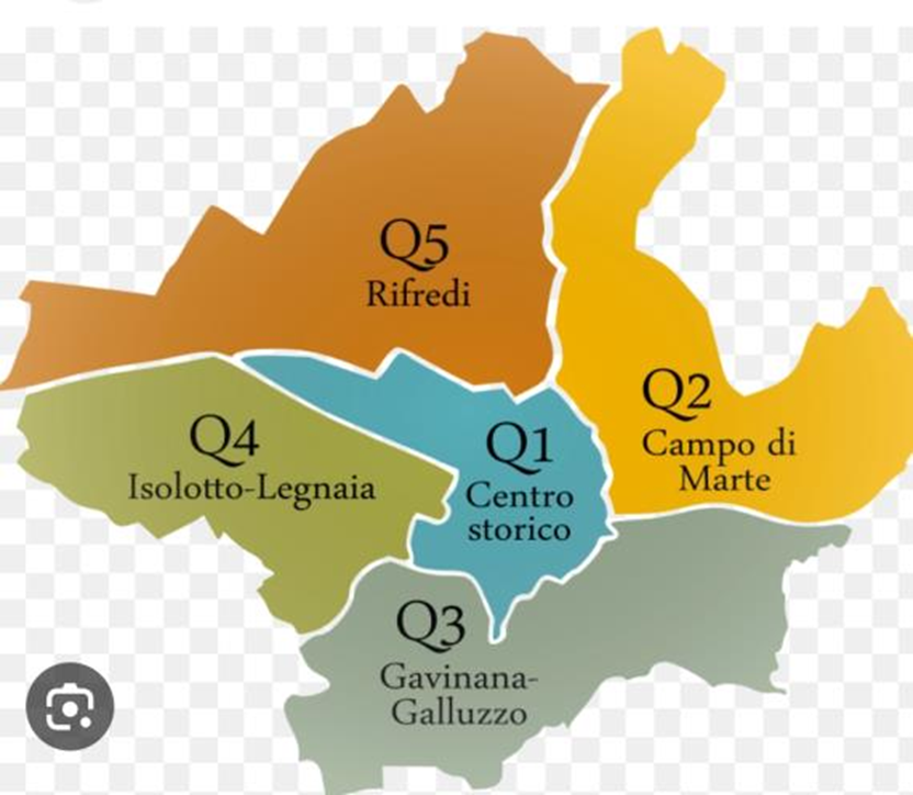 本次设计基地位于意大利佛罗伦萨市,一座最早兴建于罗马共和国凯撒大帝时期的城市,13世纪前后因羊毛和纺织业的迅速发展而崛起,1282年建立共和国,城市面积迅速扩大。老城位于阿诺河两岸,以北岸为主,以共和广场和圣母百花大殿为中心,多座古桥横跨阿诺河。目前佛罗伦萨城区分为Q1-Q5五个区域。老城主要位于Q1-Centro Storico区。