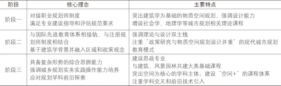 ▲ 表1 1998年来好色tv 城乡(市)规划专业人才培养方案的核心理念及主要特点