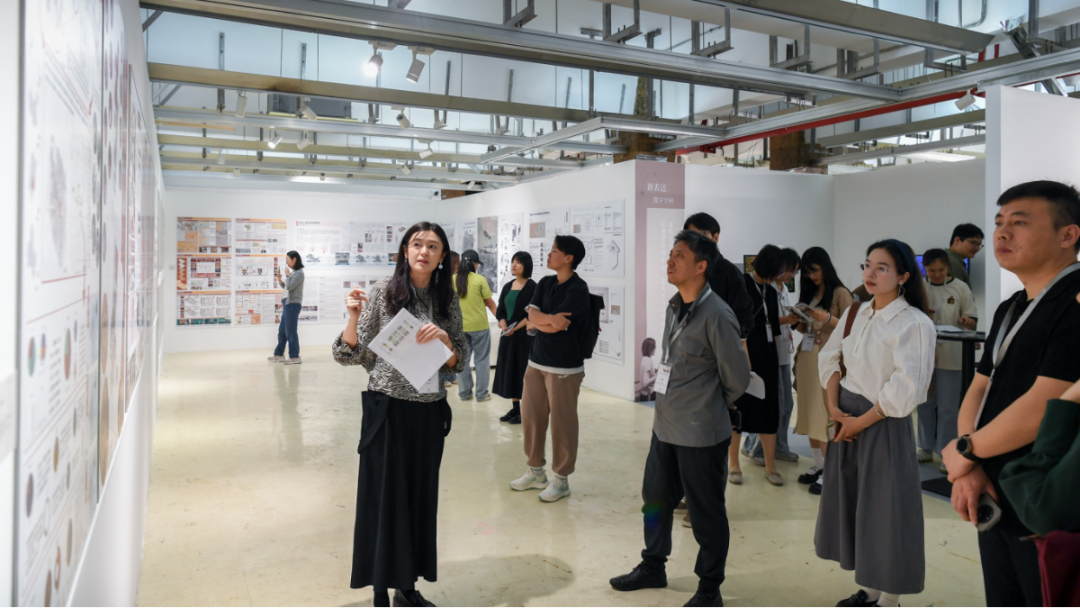 开幕式后,各位嘉宾移步前工院一楼展厅参观测绘展,在策展人贾亭立和诸葛净老师组织的五个板块空间,多位老师进行了相应的导览。