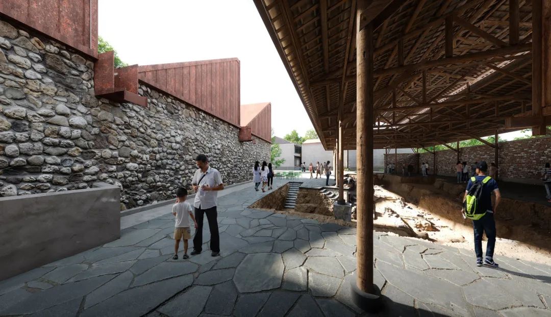 两座废弃厂房的下方是建于14世纪的国保遗产施州古城城址。更新设计将厂房和整个场地改造成为一个城墙考古遗址公园,不仅集中展示古城城墙的历史信息和考古发现,而且打开考古现场的封闭围界,将历史遗存作为激发城市公共生活的触媒,使其成为访客、研学师生和当地人会面交流的公共广场。
