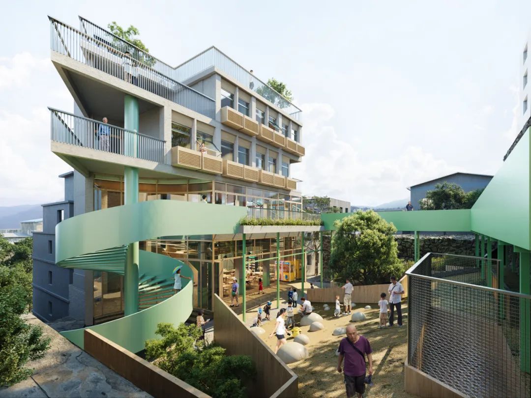 The departure of young workers has left the elderly and children of the historical town feeling isolated. To combat this, an unfinished, abandoned building is being repurposed into a vibrant intergenerational center, creating a space where seniors and children can find companionship and support. Understanding how seniors and children would use the space, the function was reimagined, and the environment thoughtfully enhanced with attention to the terrain, sound, and sunlight. Once a place of neglect, this site is now a warm, open, and thriving community heart.