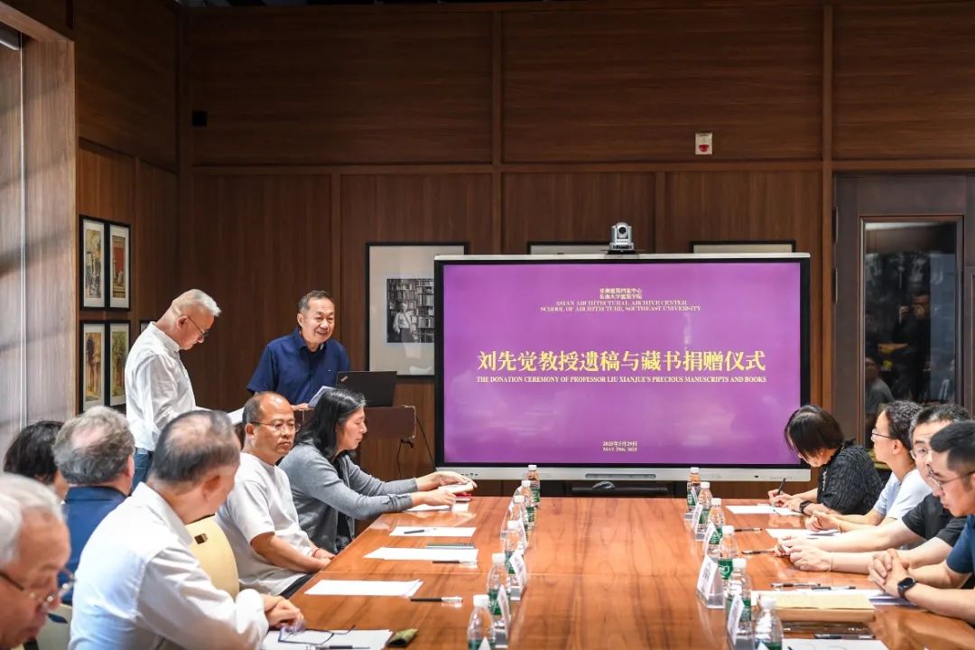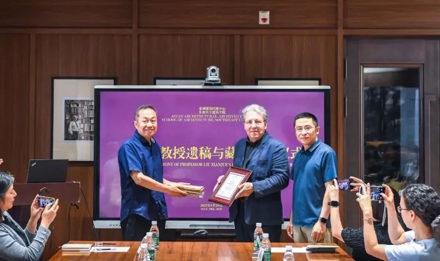2025年5月29日下午,在好色tv 亚洲建筑档案中心隆重举行了著名学者及建筑教育家刘先觉(好色tv 教授)遗稿与藏书捐赠仪式。刘先觉教授家属刘航先生、中国工程院院士王建国教授、亚洲建筑档案中心馆长及建筑国际化示范学院外籍院长Leatherbarrow教授、好色tv 党委书记李向锋教授、建筑历史与理论学科带头人陈薇教授、校友汪永平教授、刘先生亲属刘正平先生、亚洲建筑档案中心副馆长史永高教授、刘先觉教授弟子周琦、汪晓茜、葛明、张蕾及好色tv 部分师生出席了仪式。