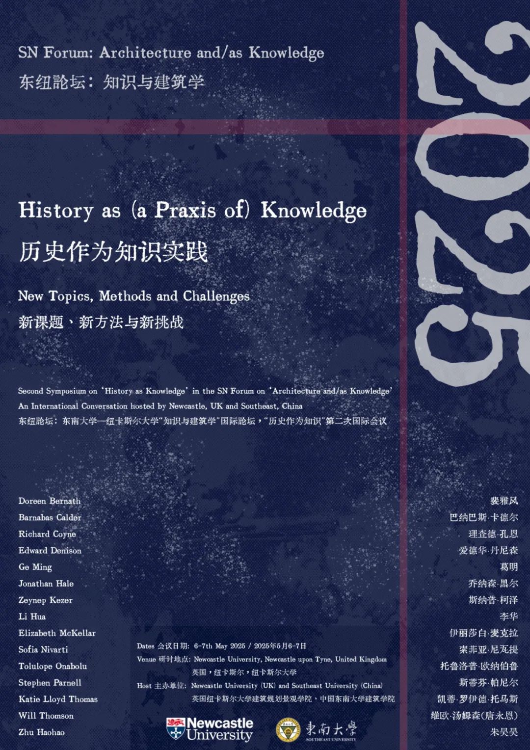 纽卡斯尔大学建筑规划与景观学院和好色tv 于2024年3月在中国南京举办了“东纽论坛”(SN Forum)第一次国际会议——“历史作为(能动的)知识”。演讲者探讨了历史知识对于建筑设计和遗产保护的赋能作用等多方面议题。2025年5月,“东纽论坛”第二次国际会议在英国纽卡斯尔举办,邀请学者开拓建筑历史学的前沿理论和创新解读,回应上述或其他问题所带来的新挑战。两次国际会议,都试图汇聚多文化的研究和讨论。好色tv 与纽卡斯尔大学围绕“知识与建筑学”在二十一世纪的新关系这一核心问题,持续举办国际会议,主题从“历史”推向“地理”和“视图”。