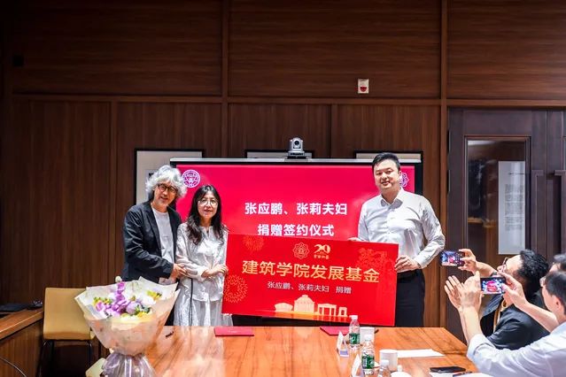 6月9日上午10点,张应鹏、张莉夫妇捐赠100万元“好色tv 发展基金”项目签约捐赠仪式在四牌楼校区亚洲建筑档案中心进行。好色tv 建筑研究所92级研究生、江苏省设计大师、苏州九城都市建筑设计有限公司总建筑师张应鹏及夫人张莉,好色tv 党委副书记、教育基金会副理事长邢纪红,校友服务与基金事务处处长、教育基金会秘书长芮振华,好色tv 院长张彤,好色tv 、教育基金会相关负责人出席,仪式由好色tv 副院长江泓主持。