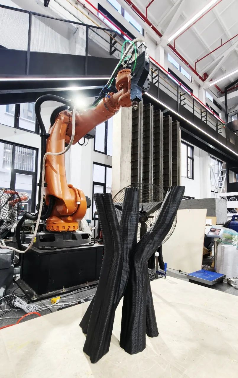 During the design phase, initial forms were generated with 3D AIGC tools and subsequently refined through geometric and topological optimization under construction constraints. In the construction phase, a series of adaptive printing control strategies were developed to address the challenges of non-planar and discontinuous surfaces, establishing a systematic and integrated“AI-Construction” workflow.