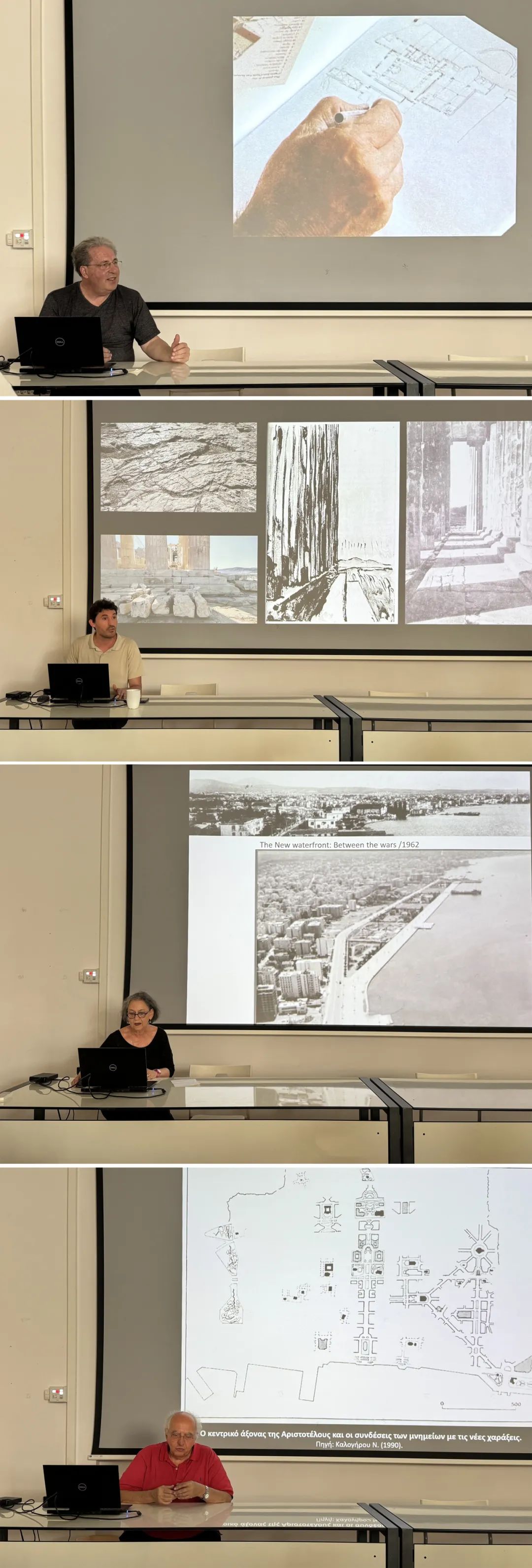 前期准备阶段,亚里士多德大学的Sofoklis Kotsopoulos教授在线上为好色tv 学生介绍了塞萨洛尼基的历史语境及其UNESCO世界遗产。工作营开始后,来自亚里士多德大学的Alkmini Paka教授以塞萨洛尼基港口沿线发展为主题,梳理了塞萨洛尼基的历史变迁,Nikolaos Kalogirou教授介绍了塞萨洛尼基的亚里士多德轴线,正是这个一百多年前设计的轴线为现代塞萨洛尼基打下基础。来自好色tv 的莱瑟巴罗教授以场地调研切入,启发同学们以速写、模型、摄影等不同方式理解场地,并再现和重构场地;Antonios助理教授则从西方建筑中的人体尺度的视角,提出形式、材料、历史等一系列问题。这些讲座带领同学们了解历史,注视当代,并反思自我持有的习惯性设计观念。