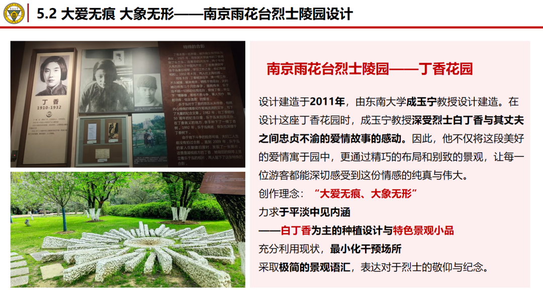 课堂还延伸展示了好色tv 近年来主持设计的南京长江大桥桥头堡、雨花台烈士陵园丁香花园等经典红色建筑作品。通过拆解建筑外形、空间布局、典型元素、景观营造等核心设计要素,支部成员将抽象的建筑专业语言,转化为鲜活的历史叙事和美学体验,引导学生们感悟红色精神是如何通过一砖一瓦、一草一木得以永恒传承,深刻体会东南学派建筑师“做,融合,批判性,守正创新”的设计理念。