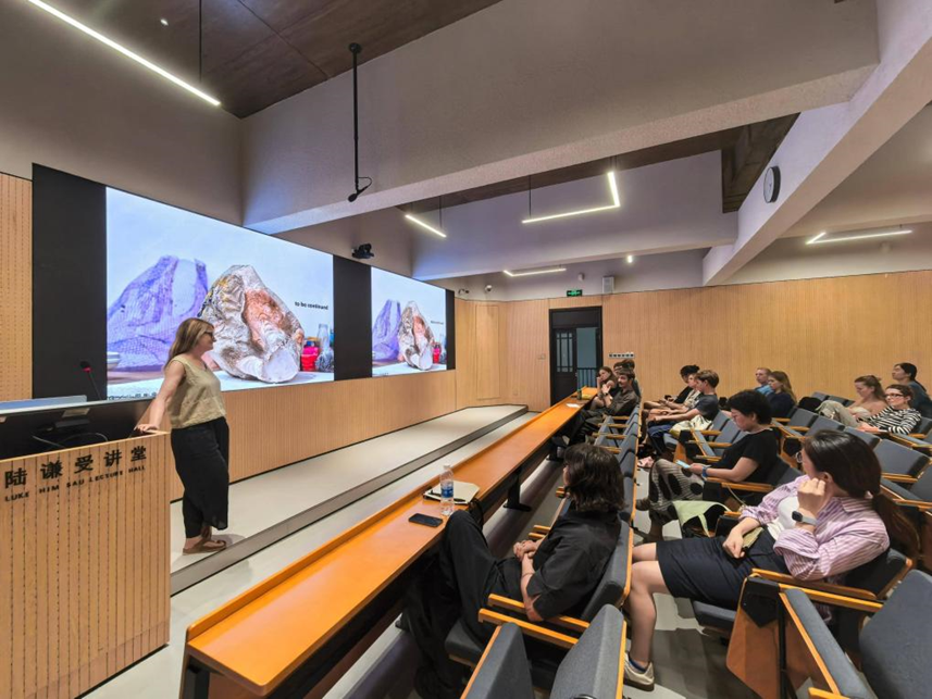 本次暑期学校在第一周的周四和第二周的周一到周三,分别安排了四次专题讲座,由艺术与媒介实践课程的四位主持教师呈现各自的研究领域,以扩展艺术与媒介研究的边界,分别是顾大庆教授的“走向建筑的绘画”(Painting toward Architecture)、Pia教授的“融入空间”(ENGAGING WITH SPACE)、Anna老师的“转化与推测”(Transforming, Speculating)和蒋炎教授的“粘土,陶瓷和空间形式”(Clay, Ceramics and Spatial Forms),使中外学生有机会对各个不同的课题方向获得一些认识与了解。教师们的精彩讲授激发了同学们对与艺术、媒介和空间关系的浓厚兴趣,教师们的经历分享也使同学们开始审视自身职业发展的可能性。在问答环节,同学们积极地与老师展开讨论,气氛热烈。