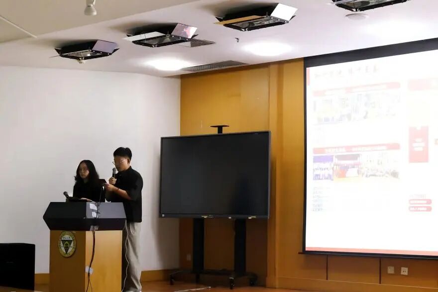 接着,学院研究生会主席团成员王鹏宇、夏天为大家分享了学院研究生会的基本概况和上一年度的工作成果,覆盖了研会组织建设、品牌建设、社会服务、学术引领、文体活动等多方面的发展概况,并传达了“拓新、引领、攀峰”的研会建设理念。