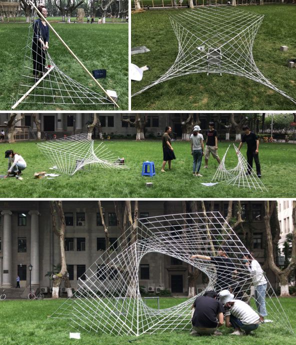 Through this joint teaching, we realize the unique integration principle of morphology and mechanics of graphic statics, which has ushered in new life in the digital age. The hyperbolic pavilion based on graphic statics is constructed by prefabrication, which breaks the boundary between architecture and landscape with smooth shape, and realizes the combination of melody and straight. The clear and definite mechanical expression and excellent mechanical properties, on the one hand, achieve the unity of structure and form, on the other hand, have the potential to be used for building structure. The school of architecture of Southeast University is also carrying out research work on the concrete hyperbolic shell structure based on graphic statics theory, constantly enriching architectural education and research content, and cultivating architectural talents in the new era.