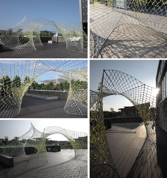 This design is based on parabolic hyperboloid. As double curved and double ruled surfaces, hyperbolic paraboloids (hypars) allow for designing efficient structures to resist loads through forms and ensure a relatively easy construction method. Additionally, the various combinations of hypars could represent an effective operation for generating architectural forms that are able to respond to diverse spatial and programmatic necessities. Hypar-Based Form Making Method is developed to combine individual hypars into free-bending smooth surfaces which meanwhile envelope various architectural spaces. Hypar pavilion is a prototype designed with this form-making method. It is a grid shell combined from 40 hypars and fabricated with aluminum cubes and cables. It shows architectural spatial potentials and structural rigidities of shells designed with this form-making method.