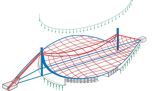 1.cable, load bearing cable with stiffen cables, system of cable in space