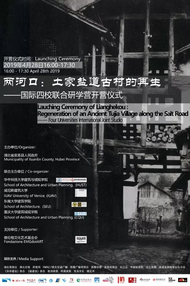 With the support of Enshi Tujia and Miao Autonomous Prefecture and Xuan'en County, funded by the education foundation of Southeast University and EMGdotART foundation, the international joint studio teaching, ”Lianghekou: Regeneration of an Ancient Tujia Village along the Salt Road” officially opened in Pengjia Village, Shadaogou Town on April 28, 2019. Led by Prof. Zhang Tong and Dr. Wang Chuan from School of Architecture, Southeast University, 11 graduate students joined a team of nearly 50 students and tutors from Huazhong University of Science and Technology, Università Iuav di Venezia and Chongqing University. In the next six weeks, Chinese and foreign students from various majors including architecture, urban planning, landscape architecture and environmental design will contribute to the local community with their professional knowledge. They will explore how the declining ancient villages along the Salt Road can be regenerated in the upcoming tourism development, while avoiding the erosion of the vibrant local cultural heritage caused by instant and superficial consumerism.