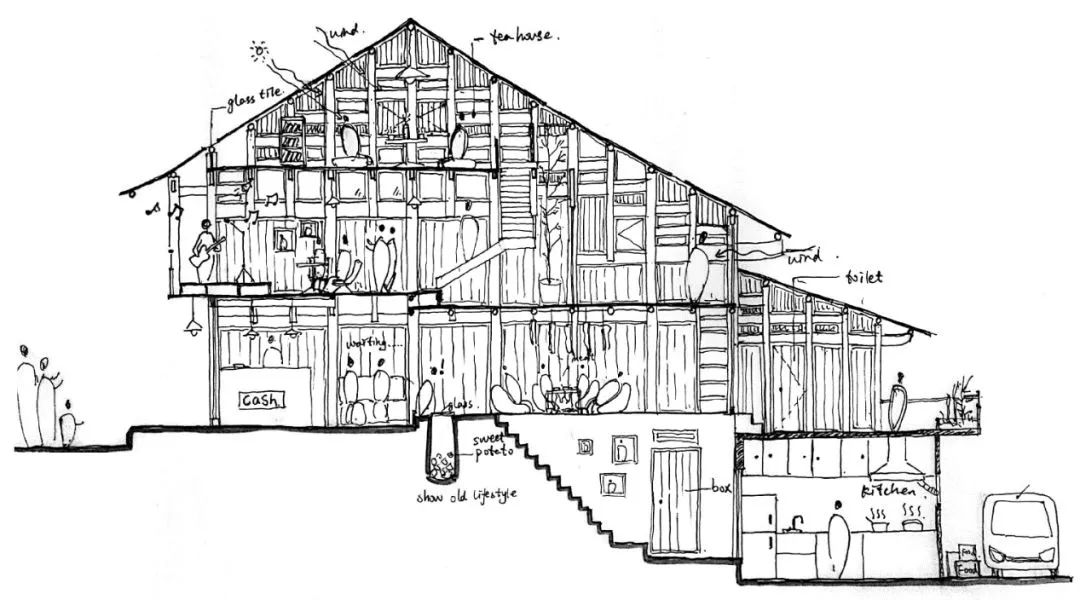 Each group will be given two tasks. One is a section of the linear village consisting of both sides of the street. Students are required to do the survey and research of the building typology consisting of but not limited to space, structure, façade, material and building techniques. Besides, each group should select one of the following six overlays to do systematic research: