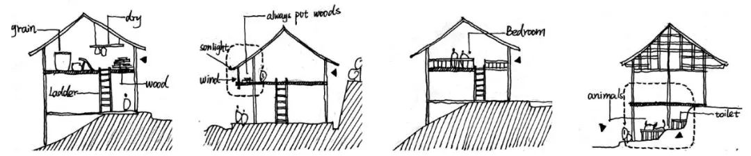 每组的调研工作分为两个部分。一是详细测绘两河口村盐道古街及其两侧建筑,进行建筑类型的调查和研究,调研包括但不限于空间,结构,外立面,材料和建造技术。此外,每个小组需选择以下六个层面中的一个进行系统调研: