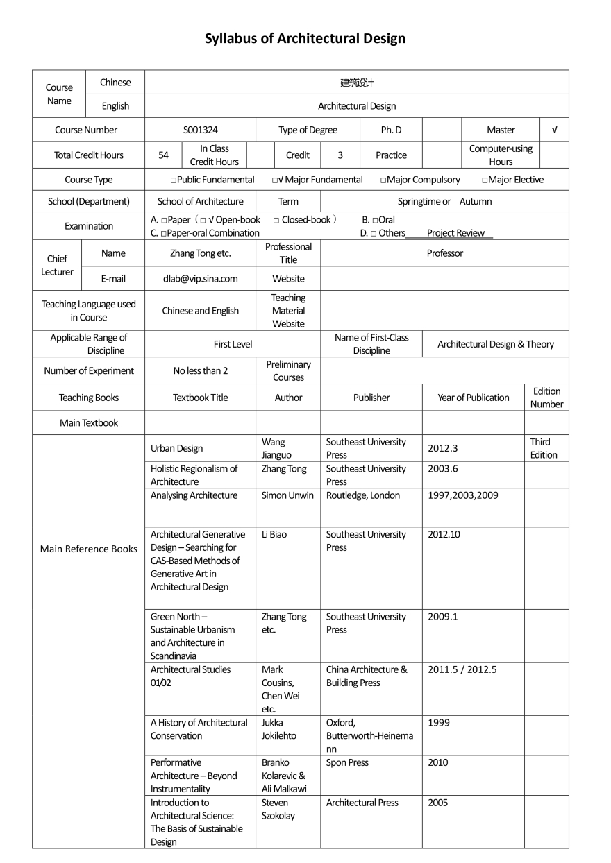 Master Program of Architecture Instructed in English