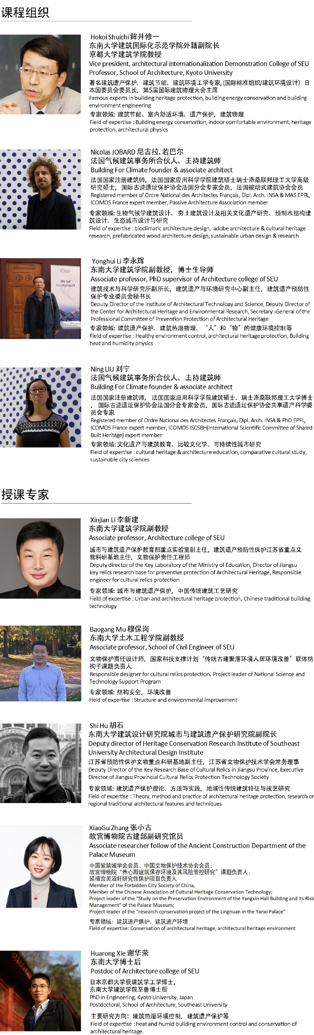 在工作营期间,授课老师也将邀请国内及欧洲的遗产保护方面的专家为国际工作营线上授课。