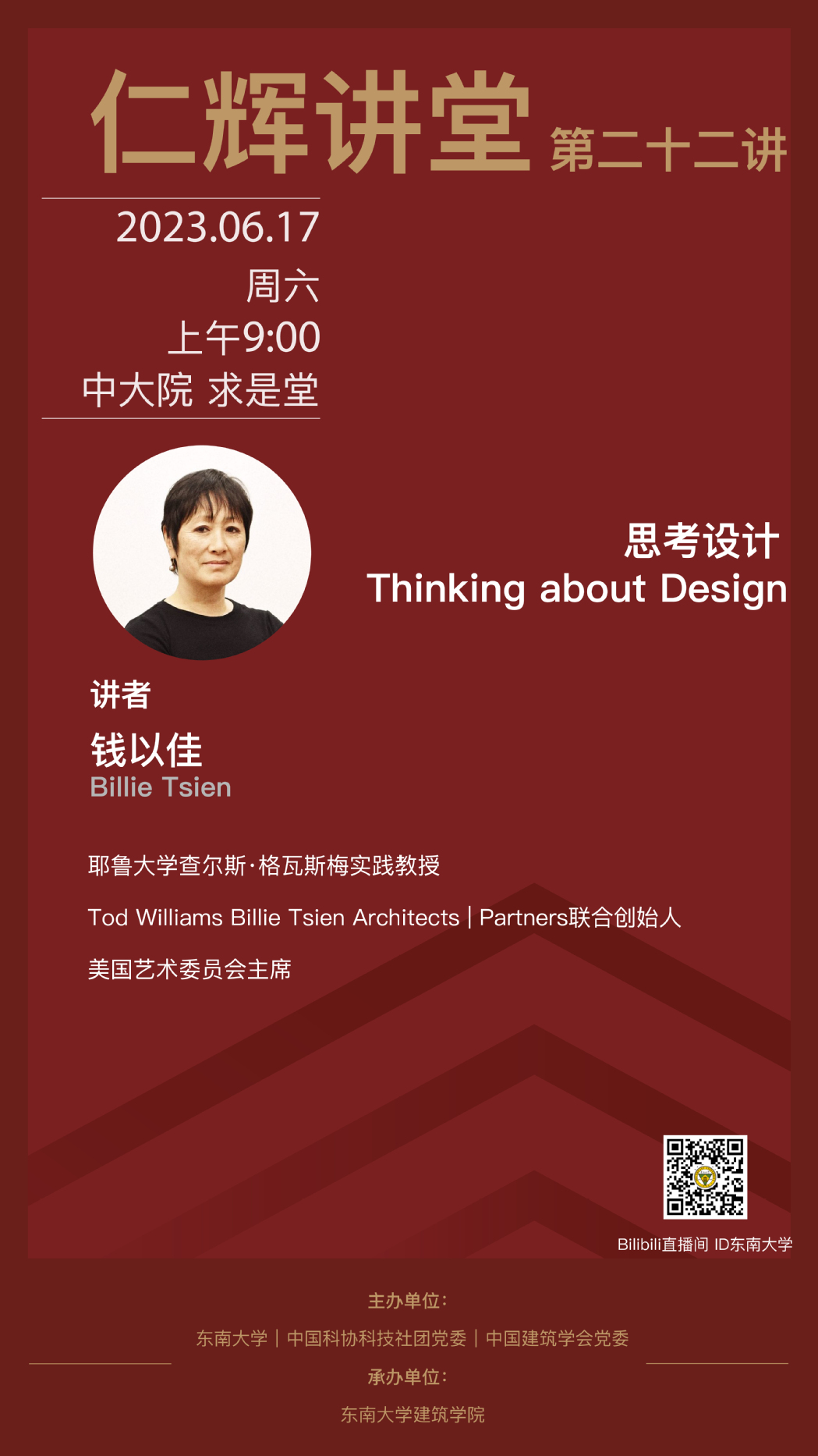 本期为仁辉讲堂为第二十二讲,由国际知名建筑师、耶鲁大学查尔斯·格瓦斯梅实践教授、美国艺术委员会主席钱以佳(Billie Tsien)主讲,采取线上线下同步直播的方式开展。The year 2021 marks the 120th anniversary of the birth of Prof. Yang Tingbao, the greatest architect of the 20th century in China and a renowned educator who, along with others, laid the foundation for the architecture program of Southeast University. In Chinese tradition, Prof. Yang Tingbao is also known as Renhui, which serves as his alternative given name. To continue and carry forward his academic spirit, the School of Architecture of Southeast University found a Forum named after Renhui in 2021,which allows for repeatedly inviting renowned scholars and architects from China and abroad to share their ideas and expertise with younger generations, enriching academic life and contributing to the development of architectural practice and education in China. The upcoming lecture is the 22nd of the Renhui Forum and will be delivered by world-class architect Billie Tsien from New York, who also holds the Charles Gwathmey Practice Professorship of Yale University and serves as the Chair of the U.S. Commission of Fine Arts. The lecture will be held both at the venue and via livestream.点击下方链接进入直播间地址