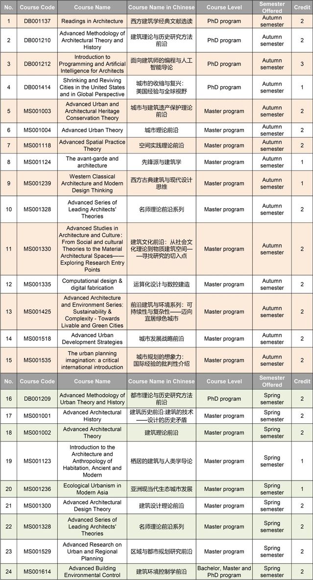 Advanced Series of Leading Architects’Theories (Autumn+Spring Semester)--2 Credits