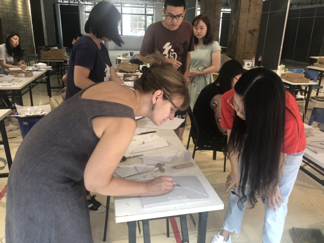 国际化示范学院专职教授Pia Simmendinger在暑期工作营指导学生